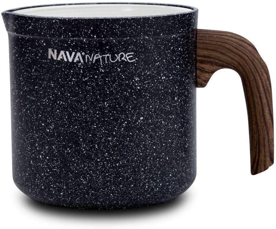 Nature Milk Pan, Stovetop Saucepan with Pour Spout, Non Stick Stone Coating, Heat Resistant Wood Effected Handle,1 Litre Capacity, 11cm Diameter