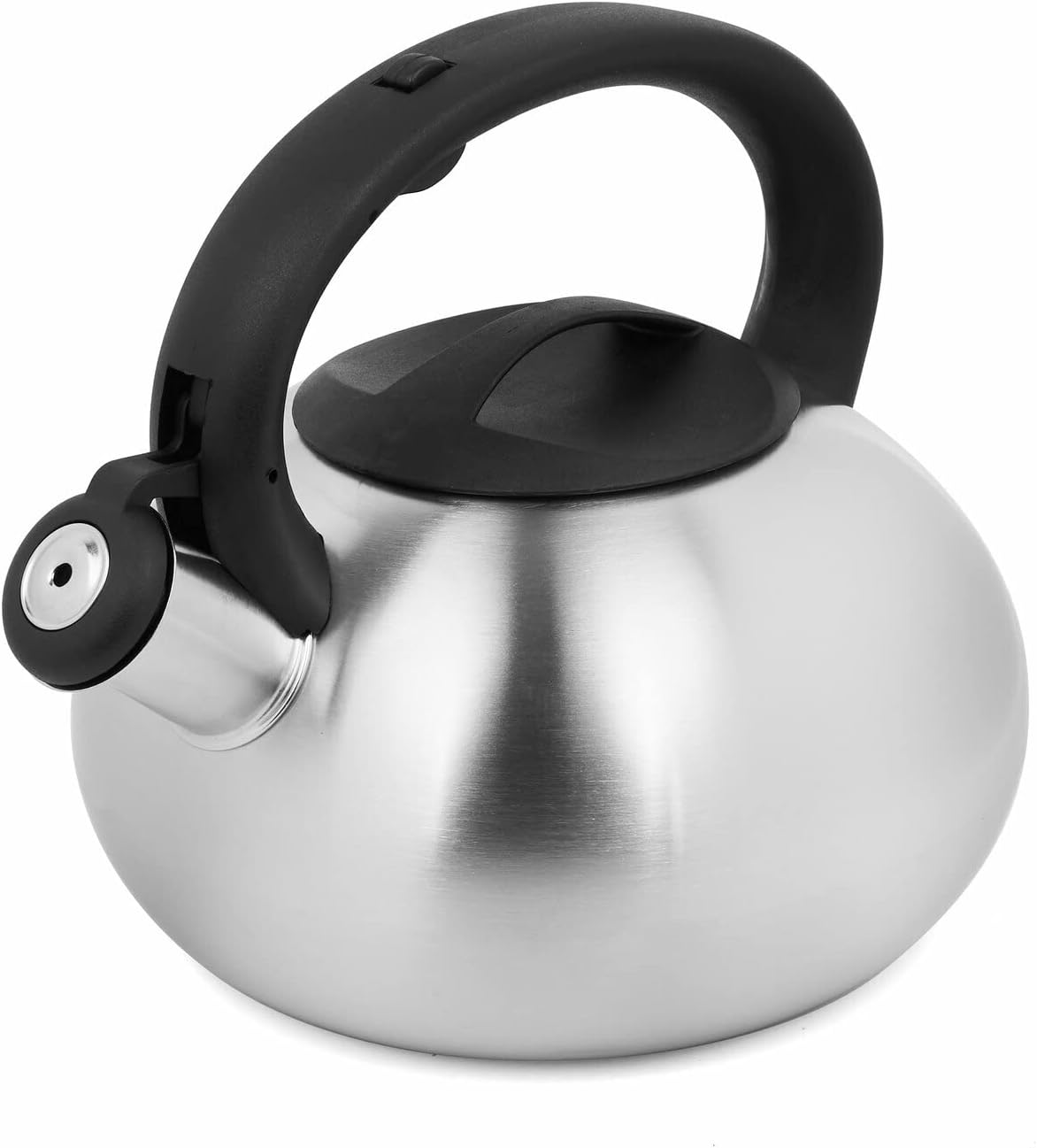 Stovetop Kettles 2.5 L Satin Silver Black Whistling Kettle for Induction Hob Gas Camping All Stovetops
